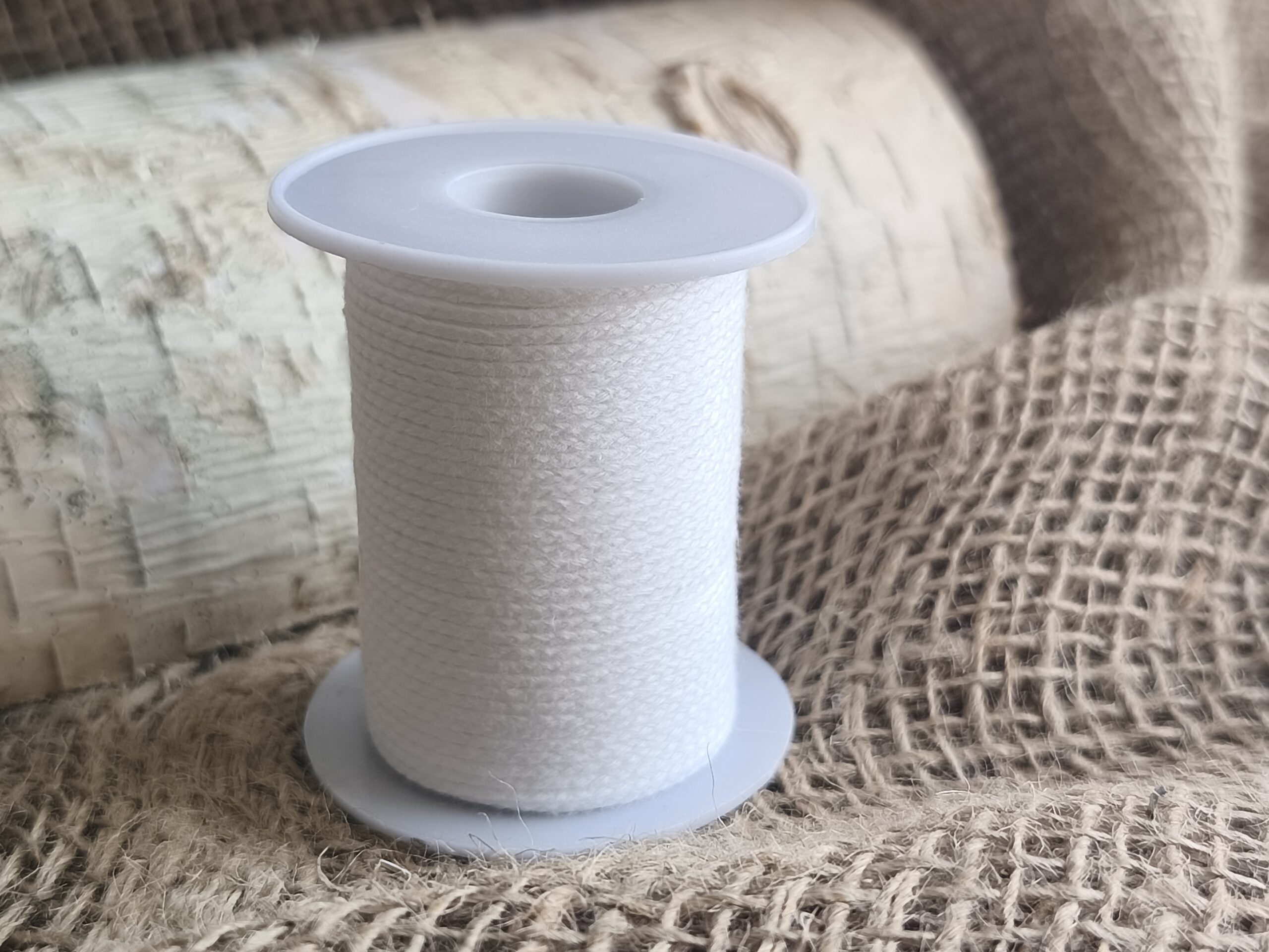 Puuvillane tahinöör, mis sobib kasutamiseks enamikele vahadele (rapsi-, soja,-parafiin-,palmi-, mesilasvahale jm) Rullis 60 meetrit